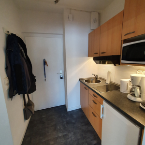 Die Küchenzeile ist ein Traum für alle, die gerne kochen und dabei die Flexibilität schätzen, ihre Mahlzeiten nach eigenem Geschmack zuzubereiten. Das Induktionskochfeld ermöglicht schnelles und energieeffizientes Kochen, während die Mikrowelle für die schnelle Zubereitung sorgt. Der großzügige Kühlschrank bietet Platz für frische Zutaten und kühle Getränke für heiße Sommertage. Die Kaffeemaschine, der Wasserkocher und der Toaster sorgen dafür, dass Sie jeden Morgen mit einem perfekten Frühstück in den Tag starten können.