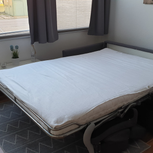 Die bequeme Couch mit Schlaffunktion und hochwertigem Lattenrost bietet nicht nur tagsüber einen komfortablen Platz zum Entspannen, sondern verwandelt sich bei Bedarf in ein zusätzliches Schlafzimmer. Der großzügige Esstisch für vier Personen wird zum Mittelpunkt geselliger Mahlzeiten – sei es beim ausgiebigen Frühstück mit frischen Brötchen vom nahegelegenen Bäcker oder beim gemeinsamen Abendessen mit den Köstlichkeiten, die Sie auf dem örtlichen Markt entdeckt haben.